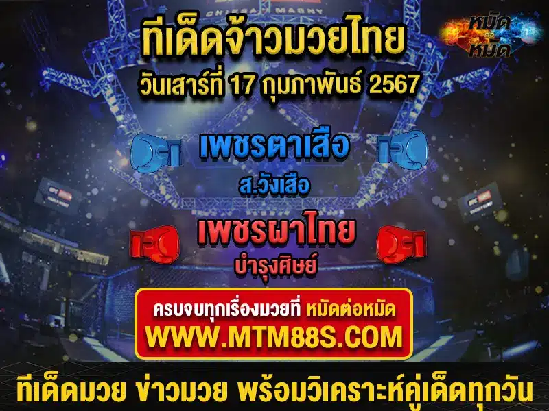 วิจารณ์มวย ทีเด็ดมวยวันนี้ ศึกจ้าวมวยไทย มวยวันเสาร์ที่ 17 ก.พ. 24 เวลา 12.15 น.