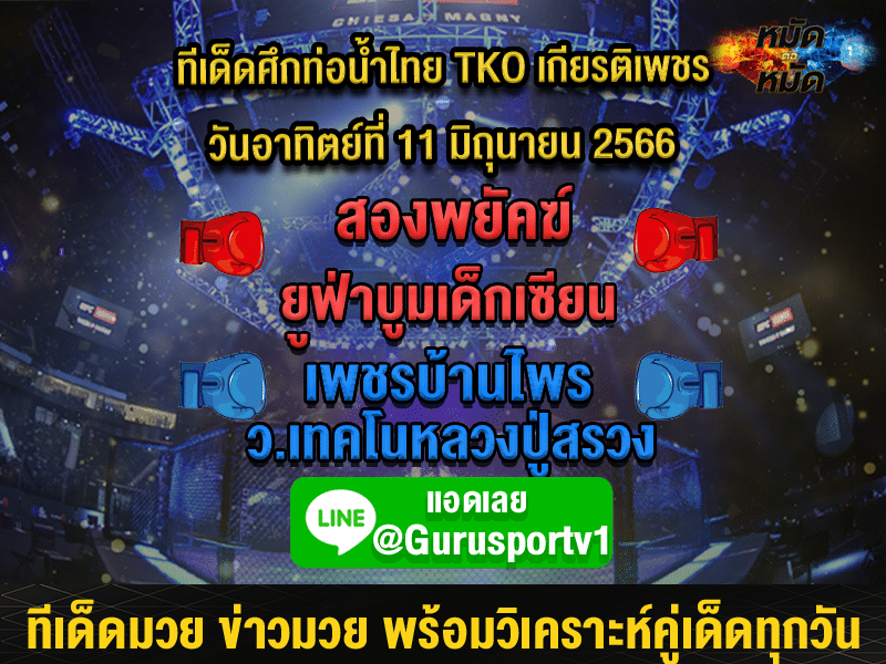 ทีเด็ดมวยวันนี้ ศึกท่อน้ำไทย TKO ประจำวันที่ 11 มิถุนายน 2566