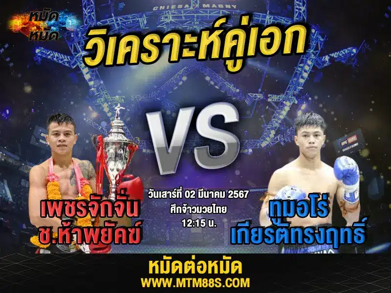 วิจารณ์มวยวันนี้ ศึกจ้าวมวยไทย วันเสาร์ที่ 2 มีนาคม 2567 เพชรจักจั่น ช.ห้าพยัคฆ์ ปะทะ ทูมอโร่ เกียรติทรงฤทธิ์ เวลา 12.15 น.