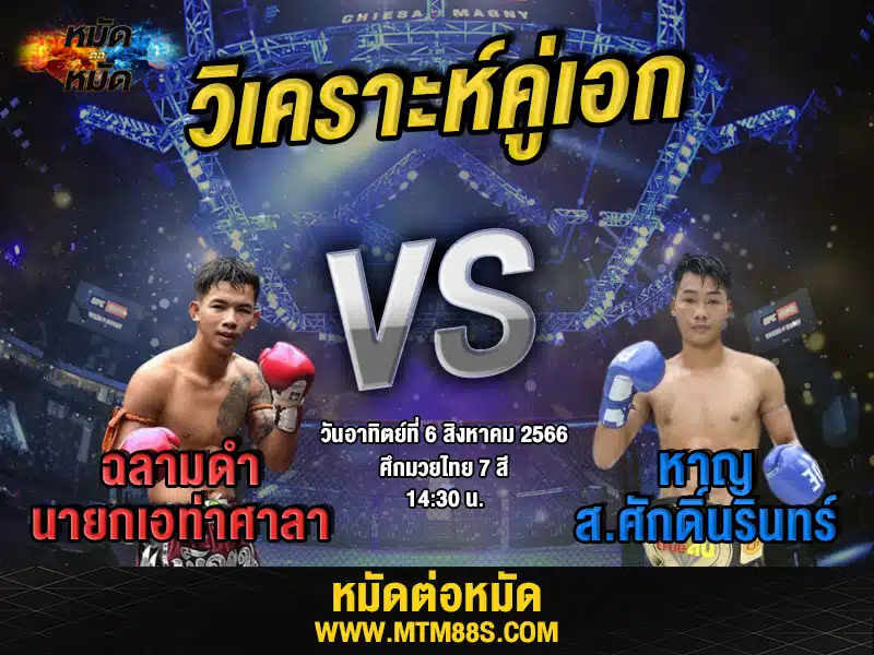 วิเคราะห์มวยวันนี้ คู่เอก ศึกมวยไทย 7 สี มวยช่อง 7 วันอาทิตย์ที่ 06 สิงหาคม 2566 ฉลามดำ นายกเอท่าศาลา ปะทะ หาญ ส.ศักดิ์นรินทร์ เวลา 14.30 น.