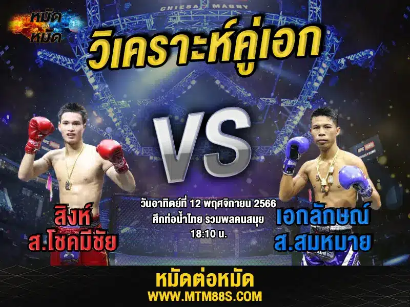 วิเคราะห์มวยวันนี้ คู่เอก ศึกท่อน้ำไทย รวมพลคนสมุย วันอาทิตย์ที่ 12 พฤศจิกายน 2566 สิงห์ ส.โชคมีชัย ปะทะ เอกลักษณ์ ส.สมหมาย เวลา 18.00 น.
