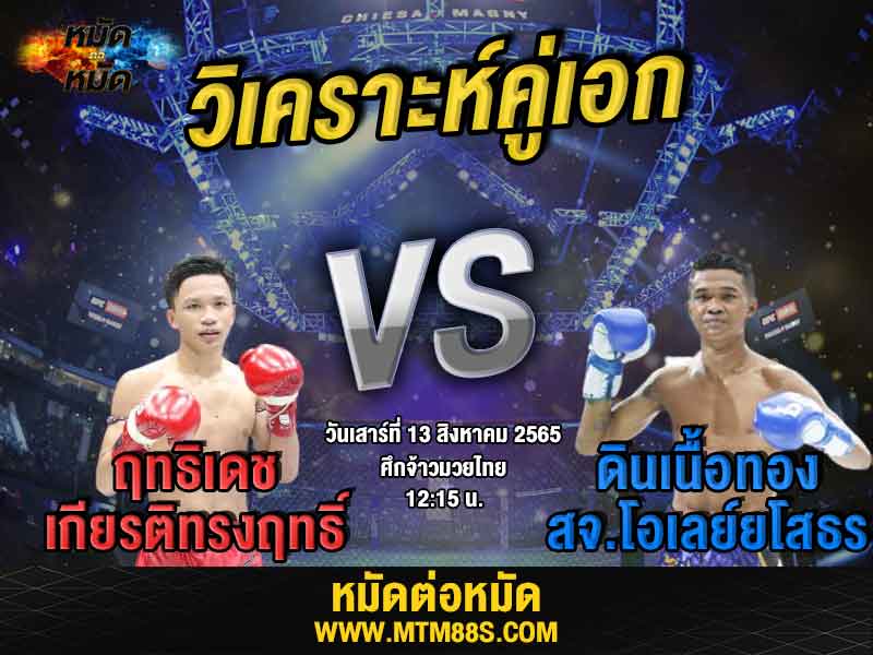วิเคราะห์มวย คู่เอก ศึกจ้าวมวยไทย ฤทธิเดช เกียรติทรงฤทธิ์ พบ ดินเนื้อทอง สจ.โอเลย์ยโสธร ประจำวันเสาร์ที่ 13 สิงหาคม 2565
