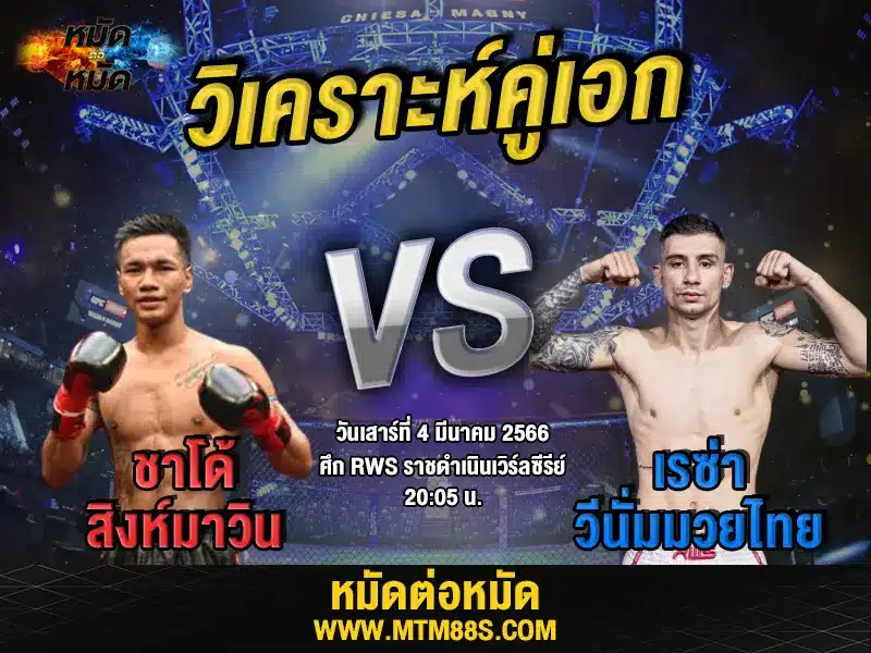วิเคราะห์มวยวิเคราะห์มวย ชาโด้ สิงห์มาวิน พบ เรซ่า วีนั่มมวยไทย ศึก Rajadumnern World Series ประจำวันเสาร์ที่ 4 มีนาคม 2566