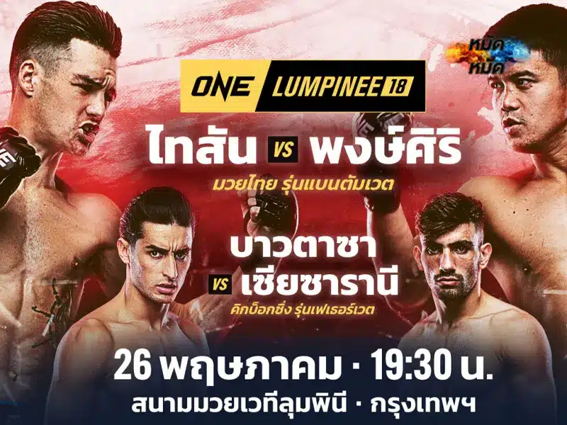 คู่เดือดประจำศึก ONE ลุมพินี 18 ไทสัน แฮร์ริสัน VS พงษ์ศิริ พีเค.แสนชัยมวยไทยยิม พร้อมระเบิดความมันส์ วันศุกร์ที่ 26 พ.ค. 66