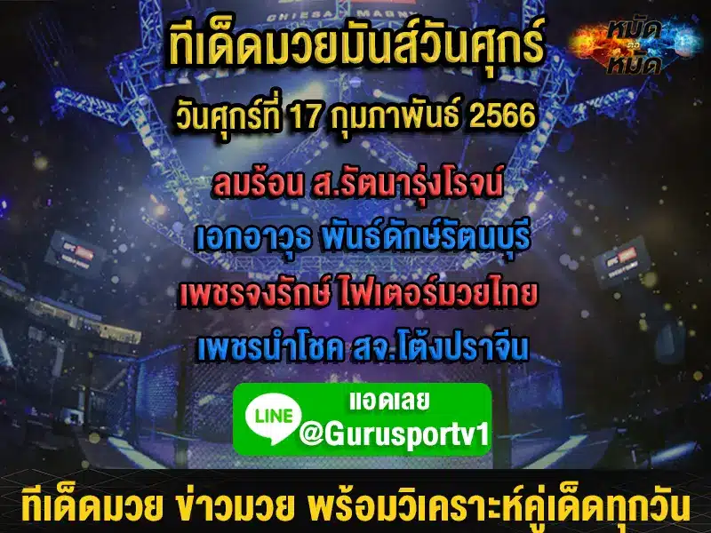ทีเด็ดมวย ศึก มวยมันส์วันศุกร์ ประจำวันที่ 17 กุมภาพันธ์ 2566