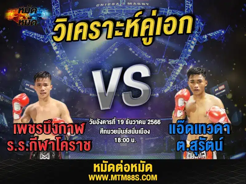 วิจารณ์มวยวันนี้ คู่เอก ศึกมวยมันส์สนั่นเมือง วันอังคารที่ 19 ธันวาคม 2566 เพชรบึงกาฬ ร.ร.กีฬาโคราช ปะทะ แอ๊ดเทวดา ต.สุรัตน์ เวลา 18.00 น.