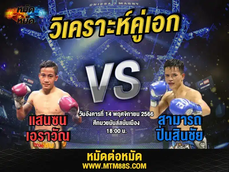 วิจารณ์มวยวันนี้ คู่เอก ศึกมวยมันส์สนั่นเมือง วันอังคารที่ 14 พฤศจิกายน 2566 แสนซน เอราวัณ ปะทะ สามารถ ปิ่นสินชัย เวลา 18.00 น.