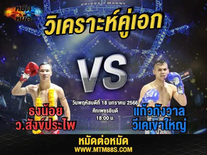 วิจารณ์มวยวันนี้ คู่เอก ศึกเพชรยินดี วันพฤหัสบดีที่ 18 มกราคม 2567 ธงน้อย ว.สังข์ประไพ ปะทะ แก้วกังวาล วีเคเขาใหญ่ เวลา 18.00 น.