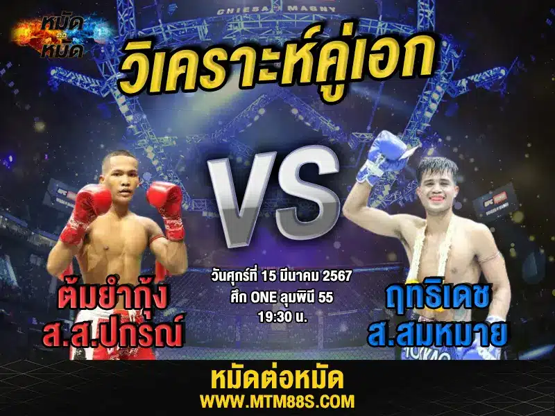 วิจารณ์มวยวันนี้ ศึกวันลุมพินี 55 วันศุกร์ที่ 15 มีนาคม 2567 ต้มยำกุ้ง ส.ส.ปกรณ์ ปะทะ ฤทธิเดช ส.สมหมาย เวลา 19.30 น.