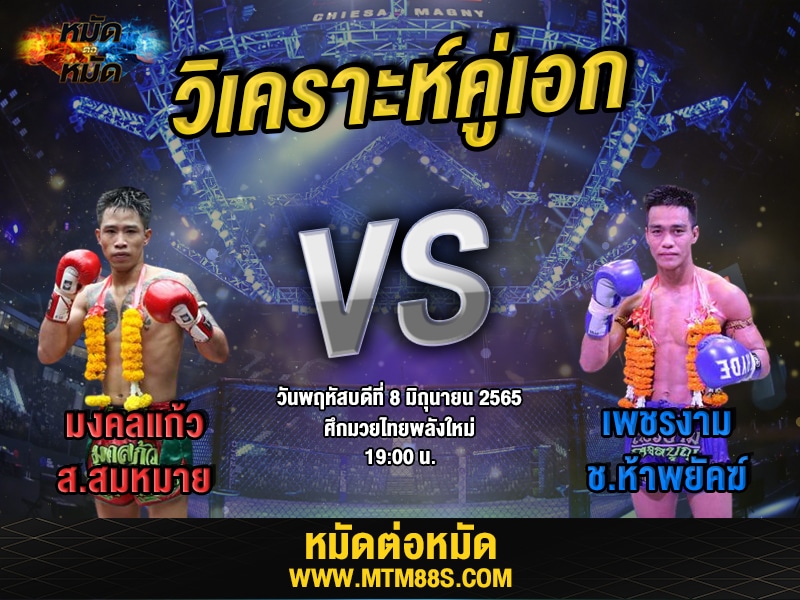 วิเคราะห์มวย คู่เอก ศึกมวยไทยพลังใหม่ มงคลแก้ว ส.สมหมาย พบ เพชรงาม ช.ห้าพยัคฆ์ ประจำวันที่ 8 มิถุนายน 2565